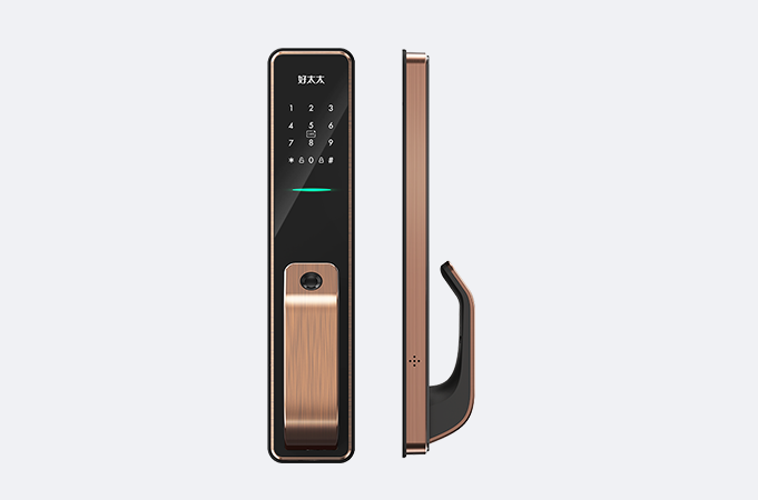 乐鱼智能锁V63在外形设计上采用了最为流行的一体式流线型外立面设计,整体外形看上去充满前卫新潮概念,加上独特的钢琴拉丝工艺以及IMD面板搭载,整体看上去非常的大气华丽,充分设计感。
