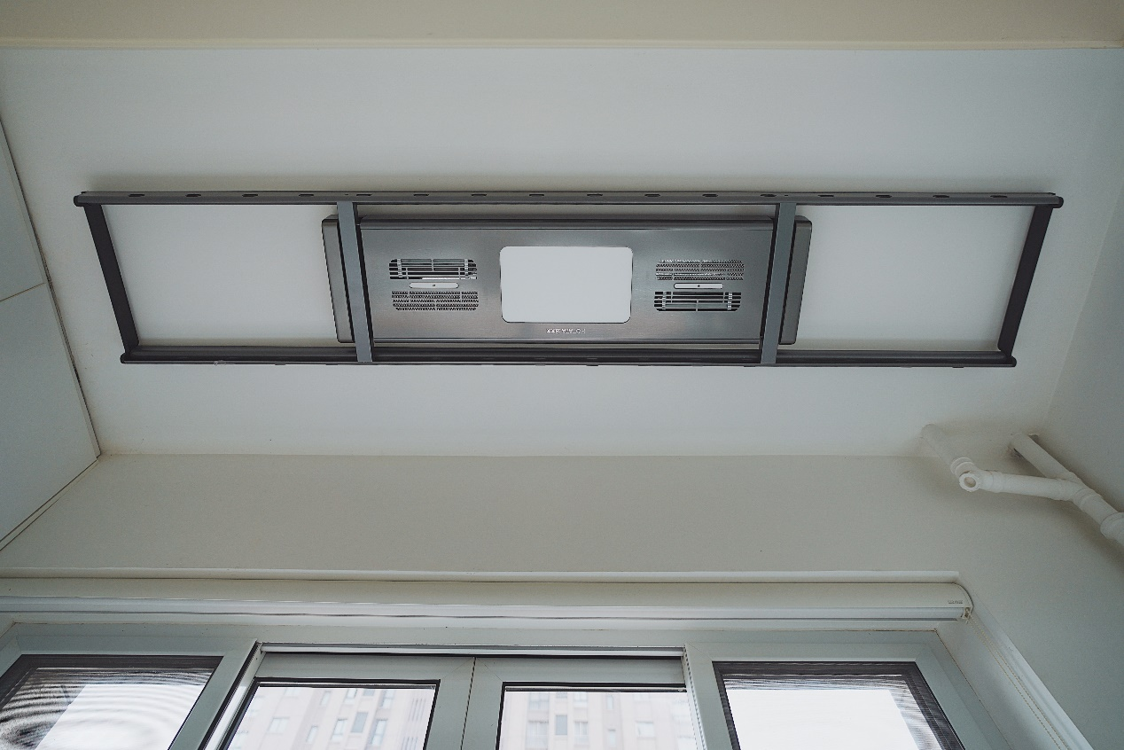 电动晾衣架的安装非常简单,顶座定位方便、省心,材质轻便,只有四个螺孔,即使一个人安装也不麻烦。