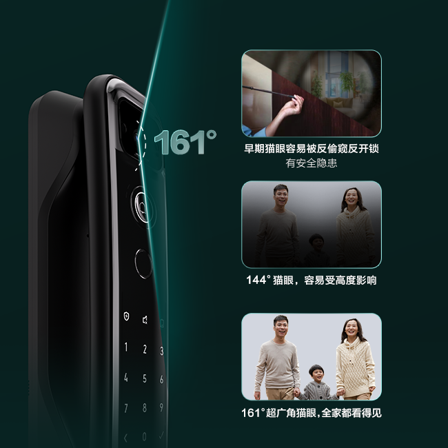 相当于装了一个随时可打开的直播监控画面,使用手机可查看锁前的实时画面,随时远程监察门外的一举一动。