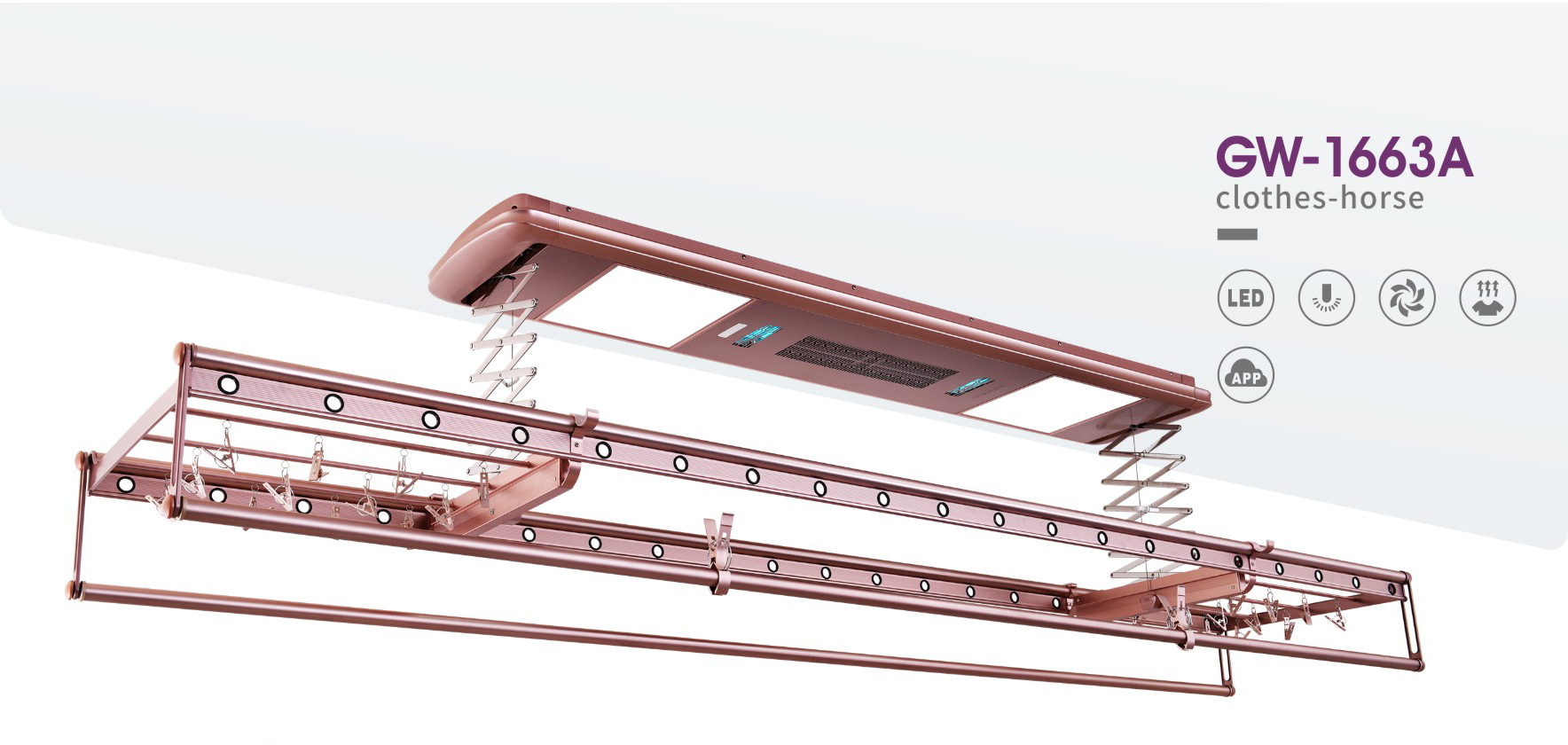 安迪款智能晾衣机(1663)作为乐鱼最新旗舰机,总体表现可谓完美无瑕。集智能升降、风干、烘干、照明、消毒和APP控制于一体,在当下智能晾衣机中是顶尖的存在。大胆、时尚的外观创新设计,使得整机观感大幅提升,与家居装潢毫无违和感,在用户体验上得到升华。这样的配置组合可称之为地表最强智能晾衣机。
