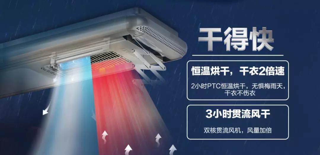 开启乐鱼智能晾衣机一键烘干功能,2小时,还你干爽衣物。