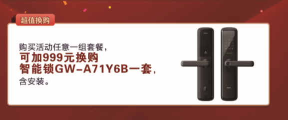 购买乐鱼组合套餐,可加999元换购智能锁一套,并且进行安装。